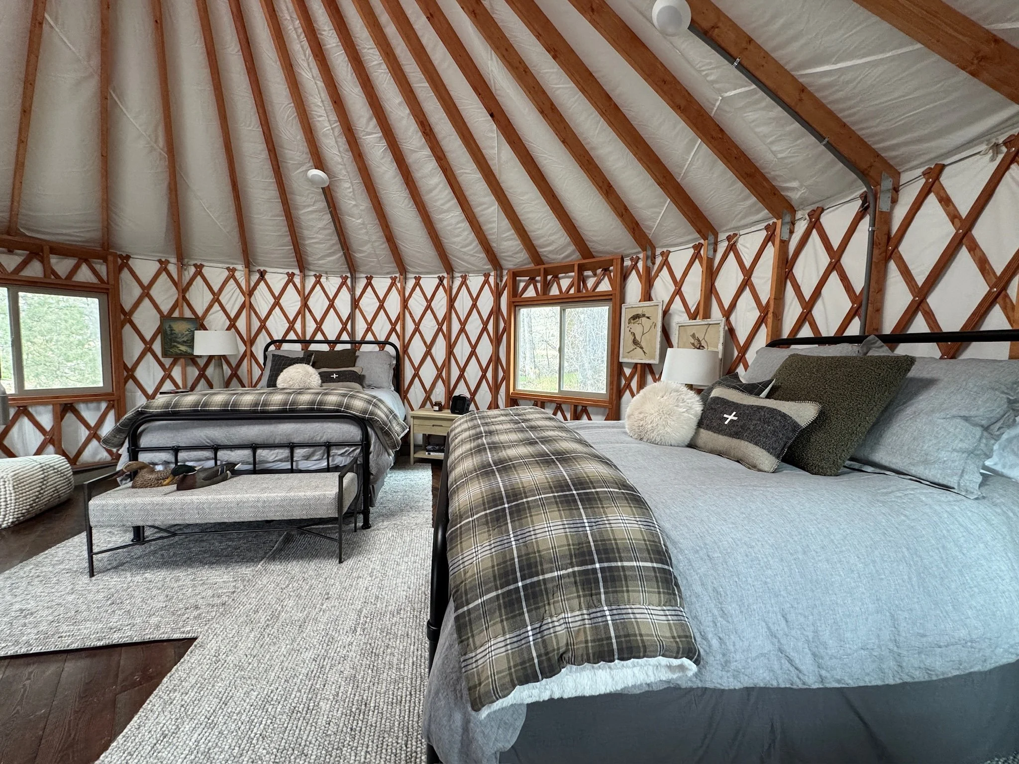 Glamp by the Beaverhead River in our well-appointed yurt. Features two queen beds, writing bed, wood burning stove, and access to amenities at the Rod & Reel, including full bath, kitchenette and firepit. Sleeps 4. $300/night.