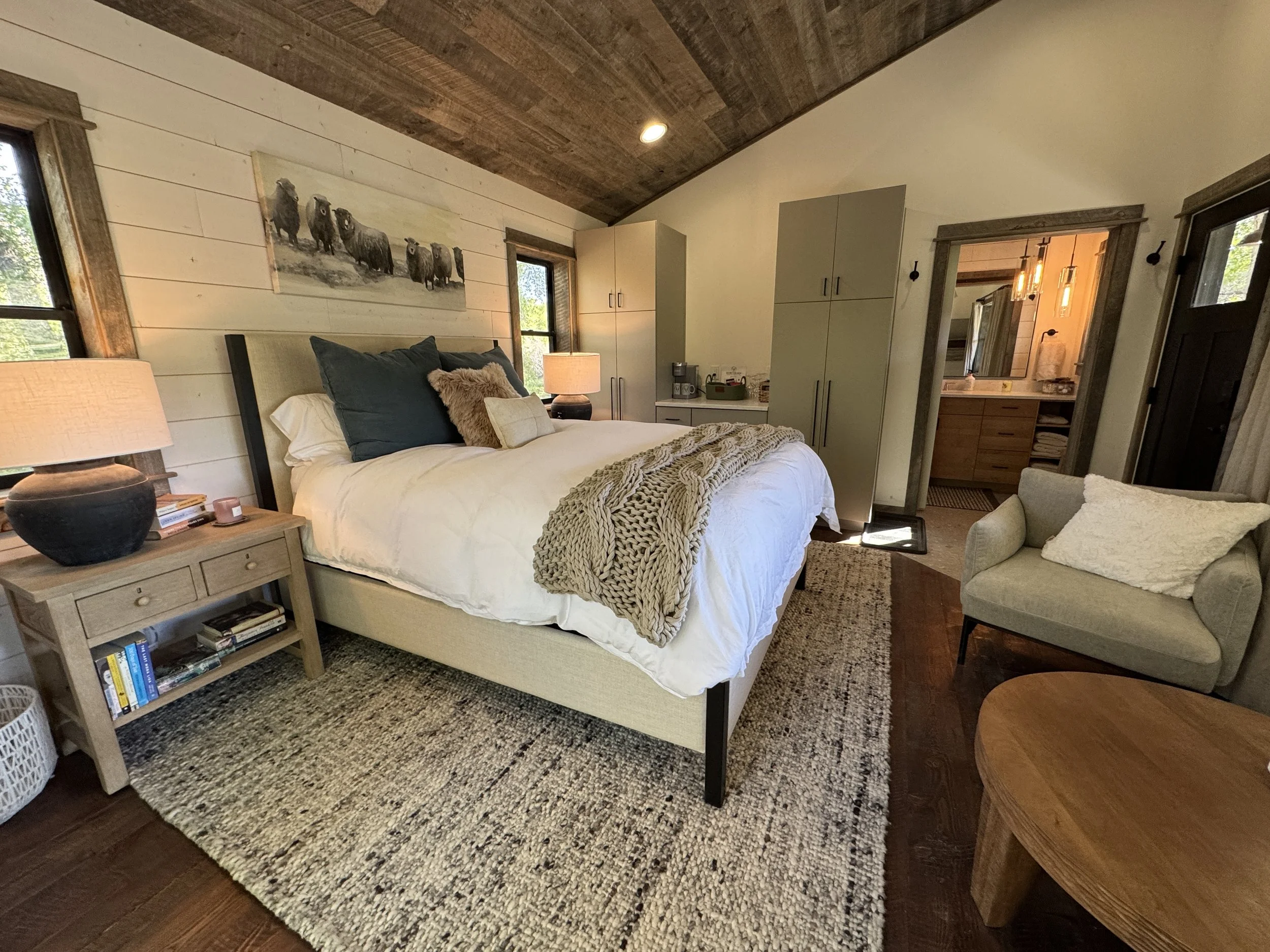 The Woods Cabin is a private studio nestled in the woods by the river and overlooks Eagle Lake. Enjoy a queen bed, full bath and kitchenette with refrigerator drawers and Keurig. Relax in the rocking chairs on the front porch and watch the wildlife. A variety of birds who have made their homes in the surrounding trees. Bald eagles are often seen perched above the lake, geese and pheasant come to the lake and the owls can be heard most evenings. Sleeps 2. $300/night.